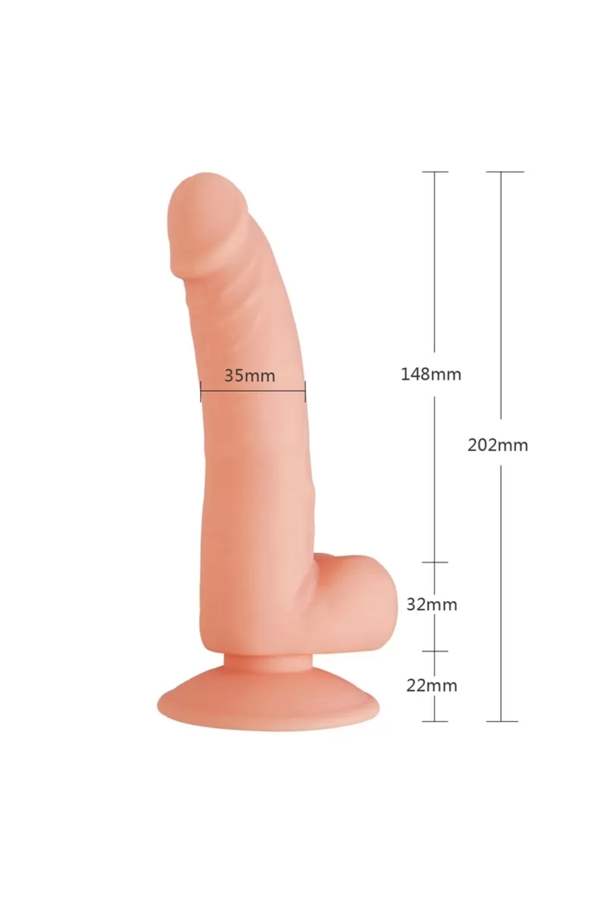 Malzeme: Silikon Renk: Ten / Ten rengi Boyut: 202mm toplam uzunluk, 148mm kesici uç uzunluğu, 35mm çap Ağırlık: 280g